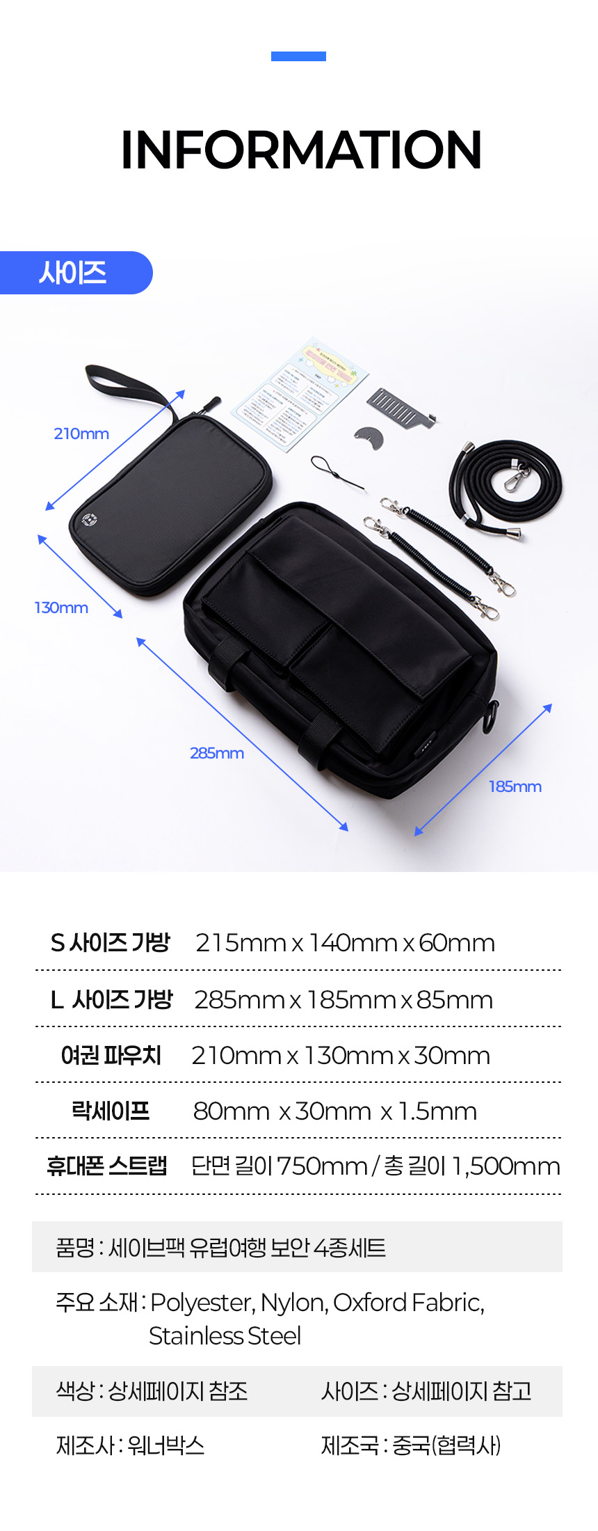 L »çÀÌÁî °¡¹æ : 285 x 185 x 85mm,RFIDÂ÷´Ü ¿©±ÇÆÄ¿ìÄ¡ : 210 x 130 x 30mm, ÈÞ´ë¿ëµµ¾î¶ô 80 x 30 x 1.5 mm, ÈÞ´ëÆù½ºÆ®·¦ : ´Ü¸é±æÀÌ 750mm / ÃÑ ±æÀÌ 1,500mm |
