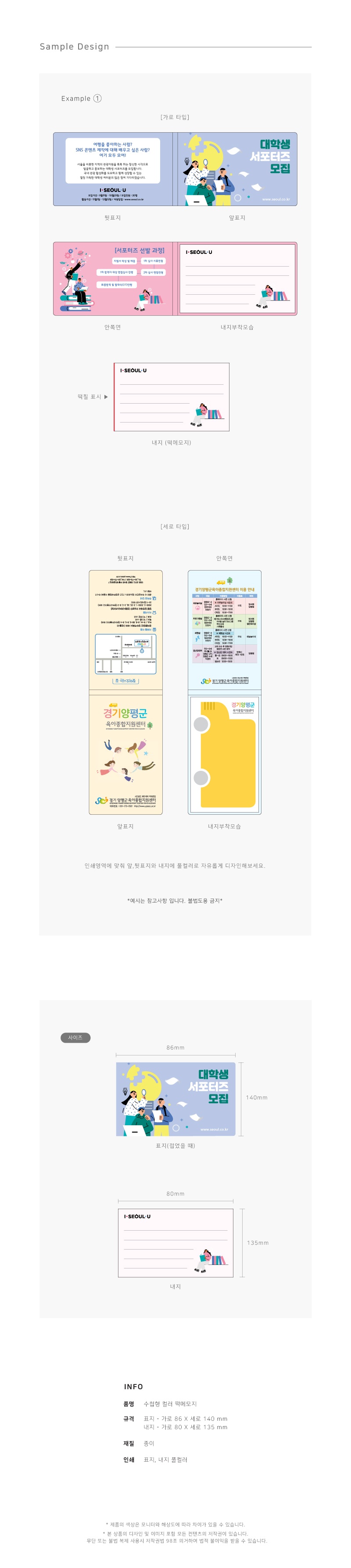 Ç¥Áö 86*140 / ³»Áö 80*135mm (¶±¸Þ¸ðÁö) |