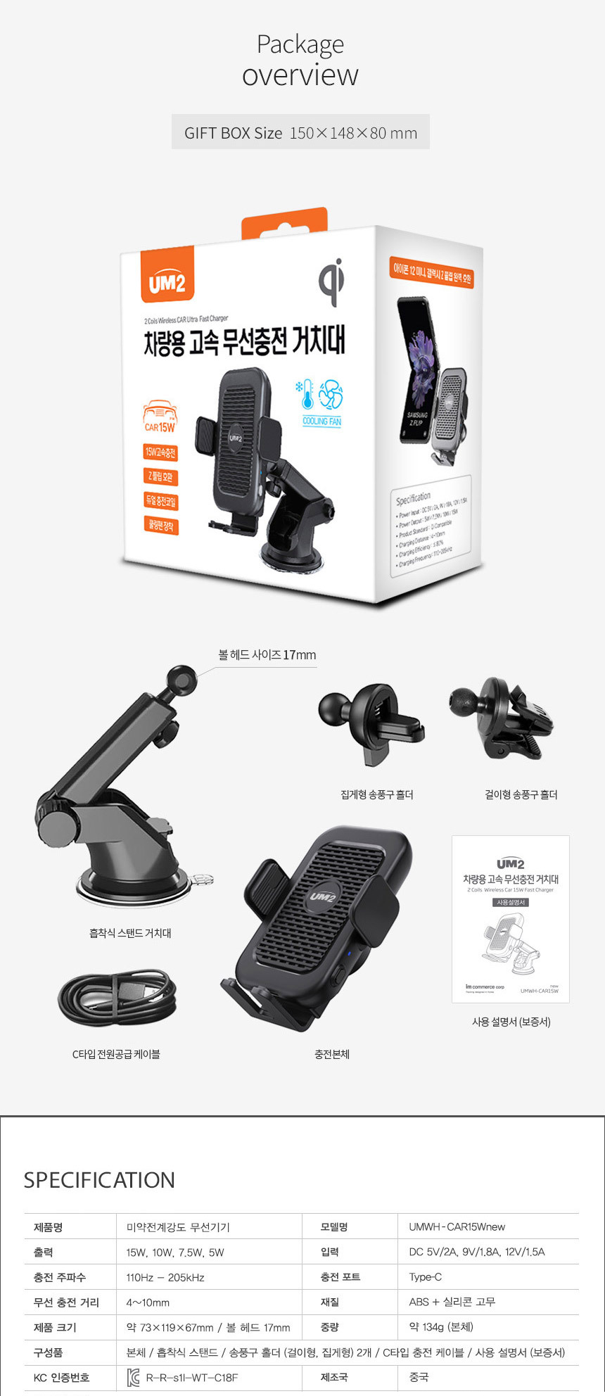 UM2 UMWH-CAR15W Â÷·®¿ë ÃæÀü±â ¹«¼± °ÅÄ¡´ë new